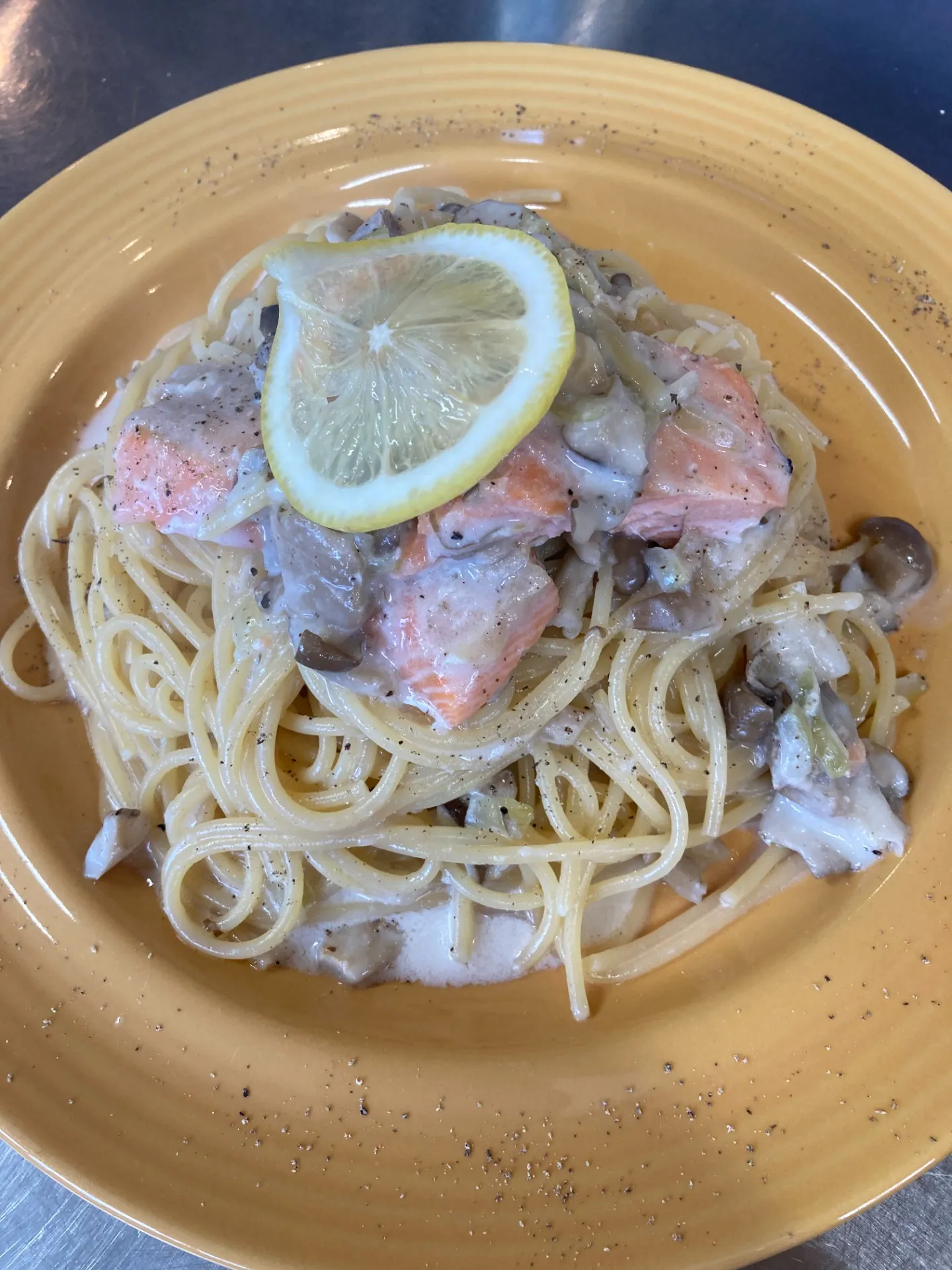 『サケとキノコのレモンクリームパスタ』